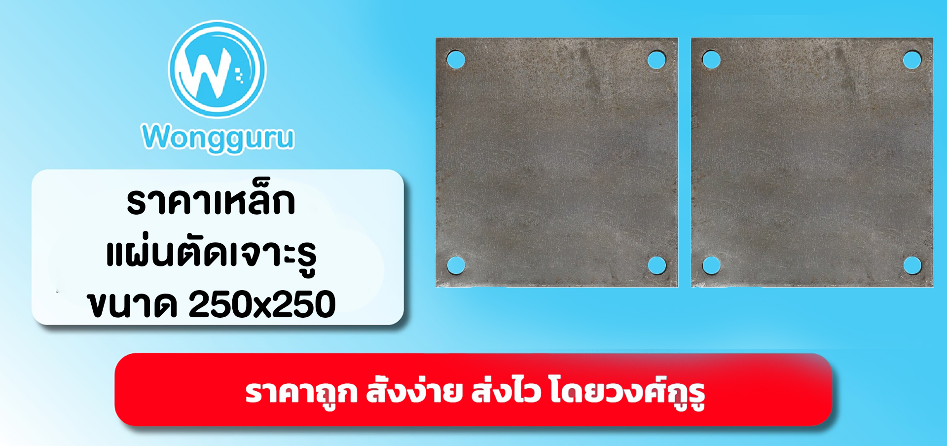 | 1 | ราคาเหล็กแผ่นตัดเจาะรู 1/2 นิ้ว 4รู ห่างขอบ 20มม. | 4.5 | 250x250 | 2.2 | 102.90 |