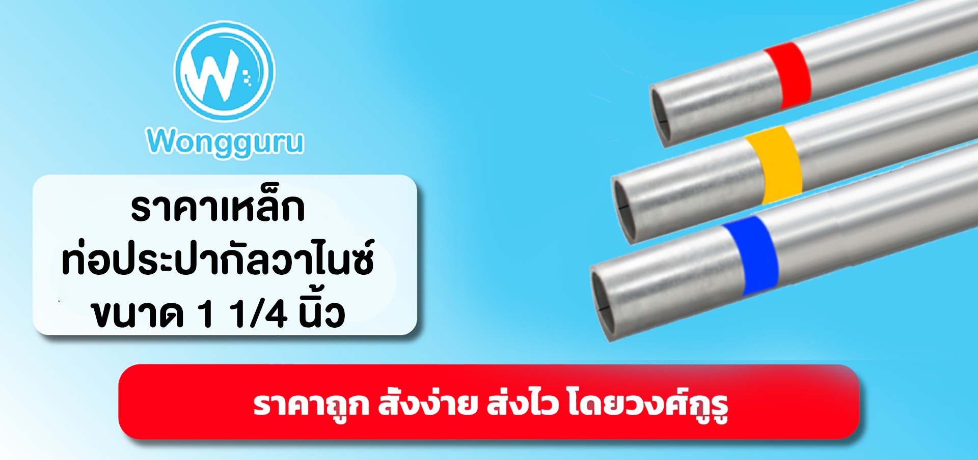 | 2 | ท่อประปากัลวาไนซ์ 1 1/4 นิ้ว คาดแดง ปลายเรียบ | 8.05 | - |