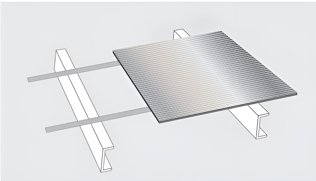 ปูฉนวน AERO-ROOF™ เหนือโครงฝ้าเพดานตามแนวโครงคร่าวบน โดยหันด้านฟอยล์ขึ้นด้านบน